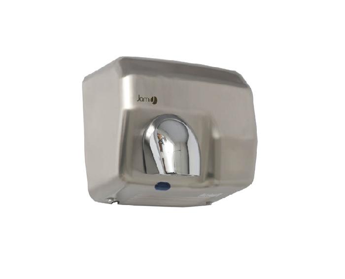 Secador de manos automático con potencia de 2500w y voltaje de 220v. Con cuerpo de acero inoxidable en acabado satinado. Dimensiones 270x240x200 mm